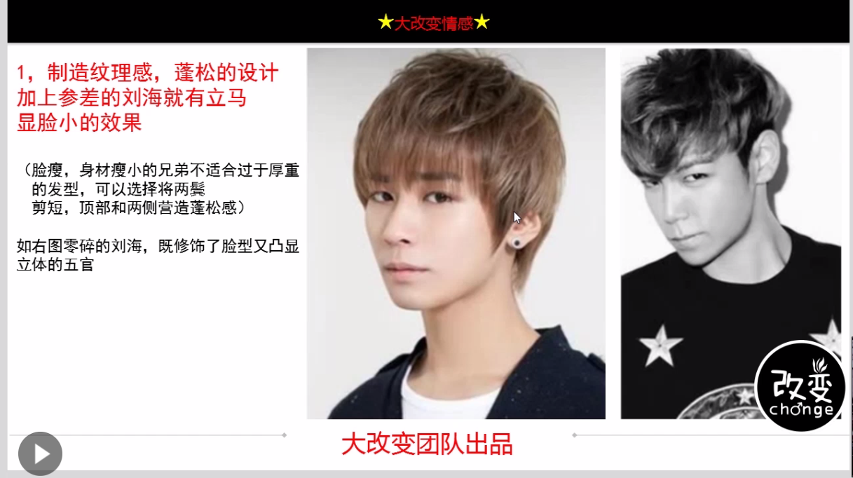 1.制造纹理感,蓬松的设计加上参差的刘海就有显脸小的效果(脸瘦,身材瘦小的不适合过于厚重的发型,顶部和两侧营造蓬松感)