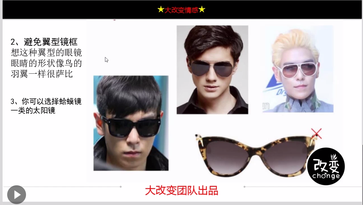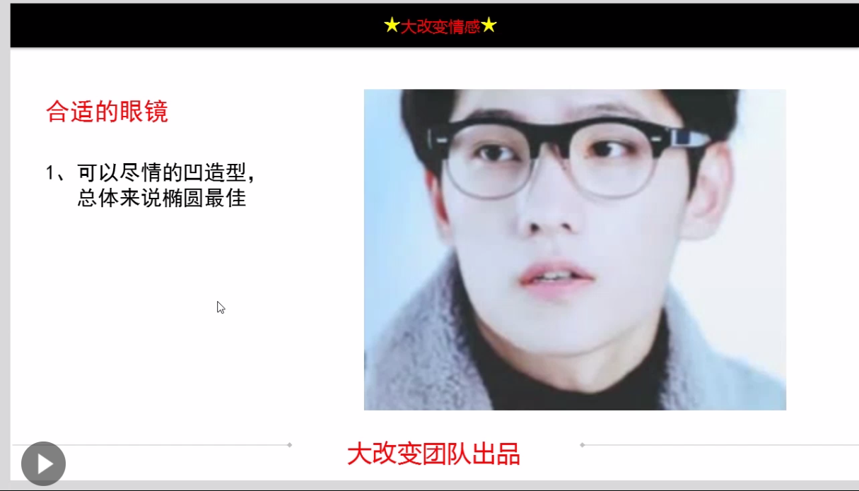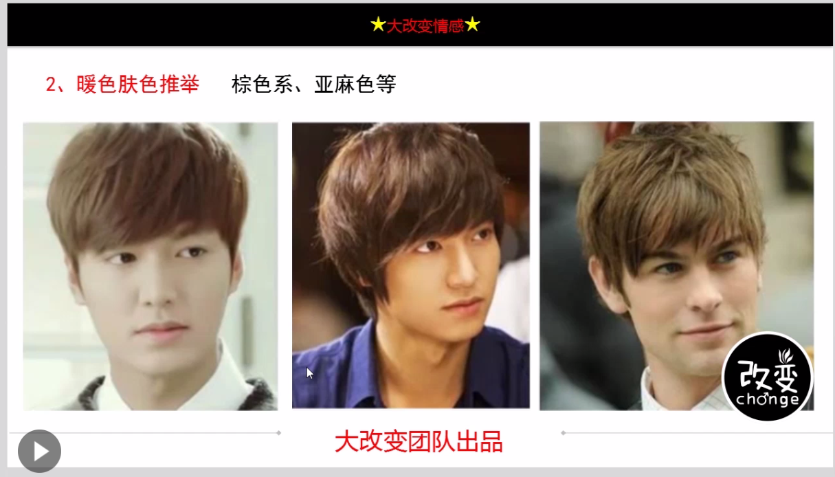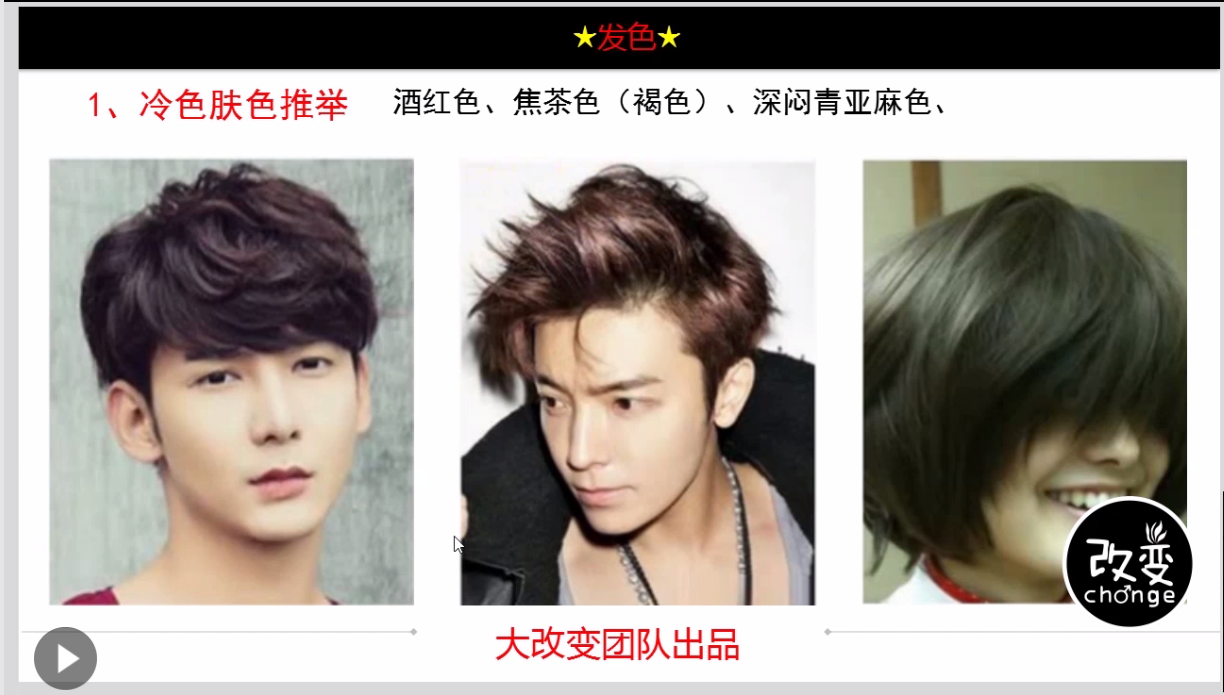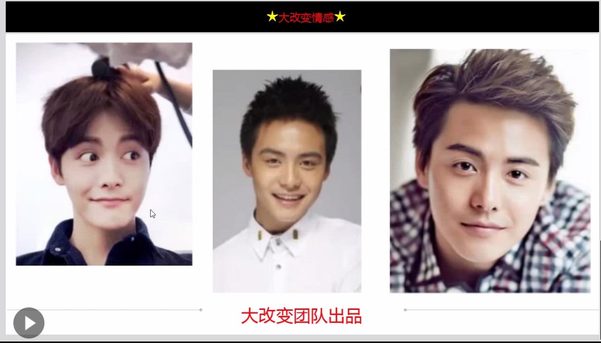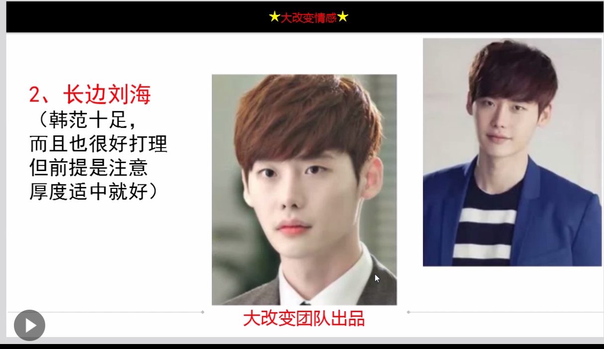 菱形脸也可以侧分后梳(两侧和头顶处一定要饱满,但不能贴头皮)