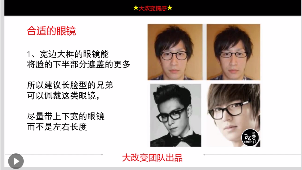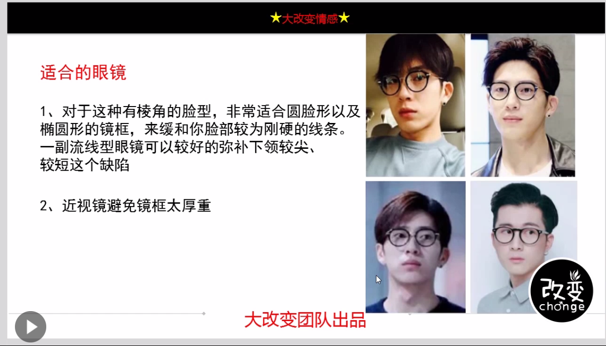 方形脸:下颚宽大,棱角过于分明,人显的木讷需要从视觉上拉长脸型;修饰方法:方形脸看起来更有阳刚之气,可以选择利落的短发,不要选择过长,中分等过于厚重的发型,另外鬓角的发型可以缩小视觉宽度。