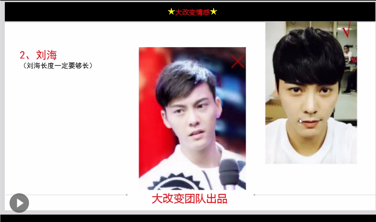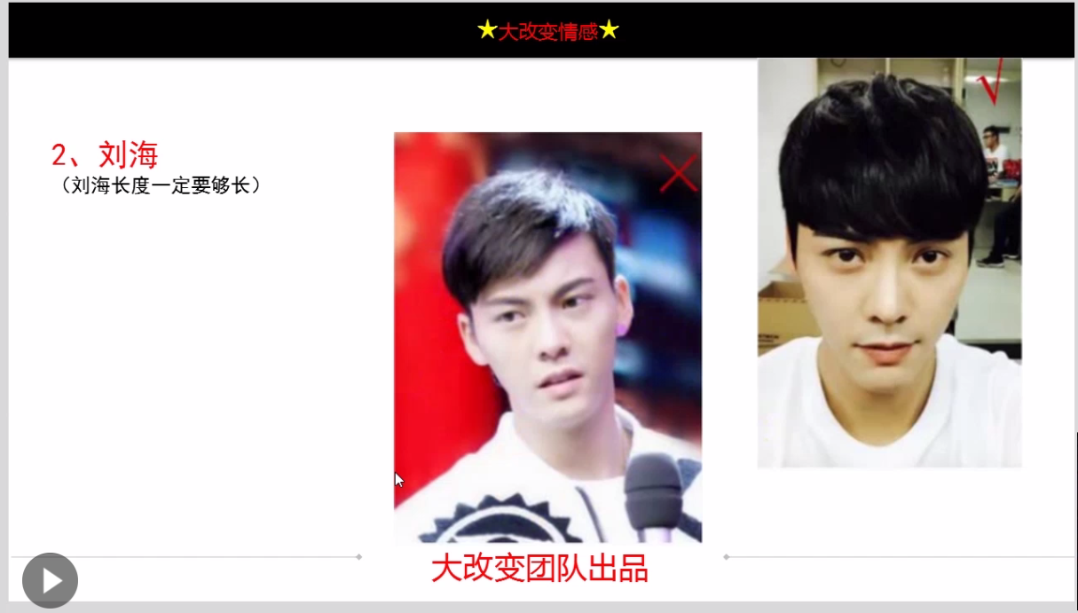 2.自己选好两至三张图片,带给发型师做参考,再结合发型师的意见,这样能在很大程度上避免出错;