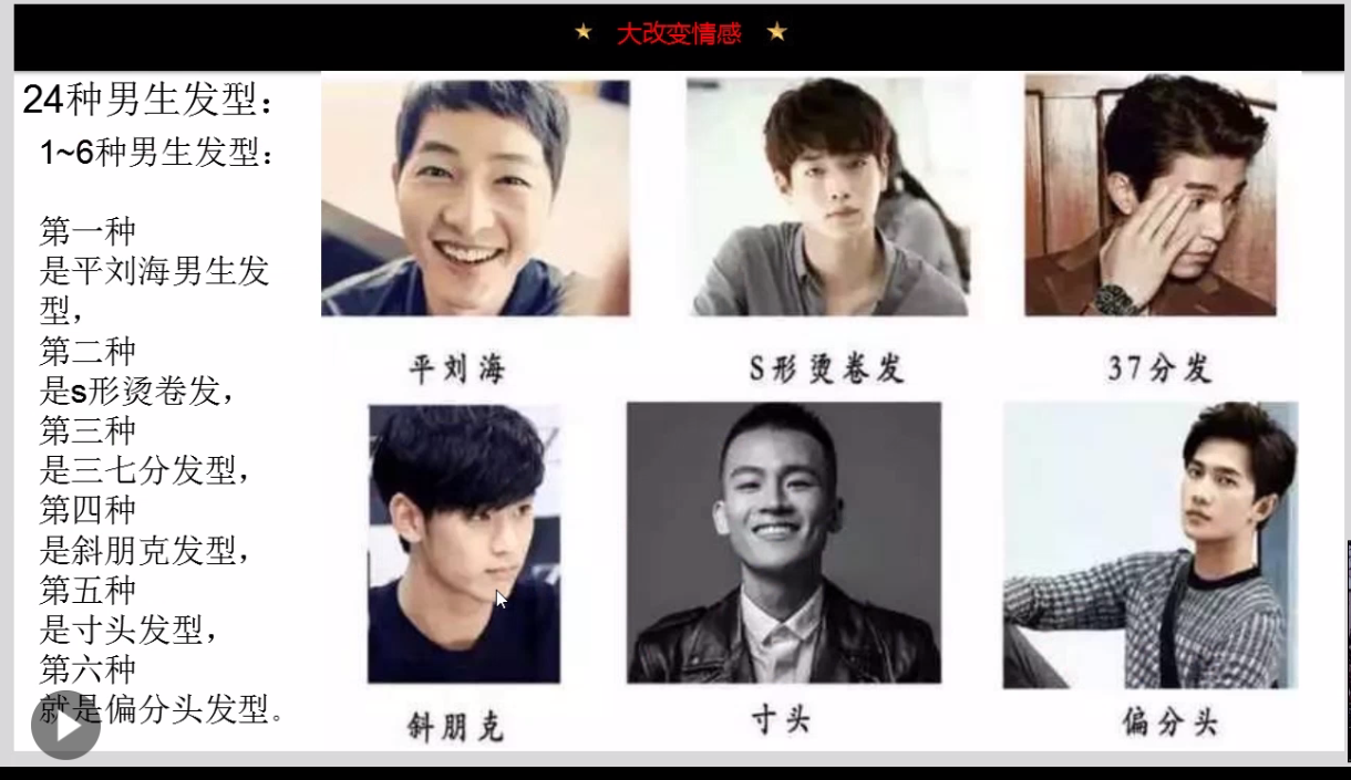 发型这种东西的重要性要占第一印象整体因素的30%以上,一个好的,适合自己的发型能给形象上塑造起一种非常好的精气神。
